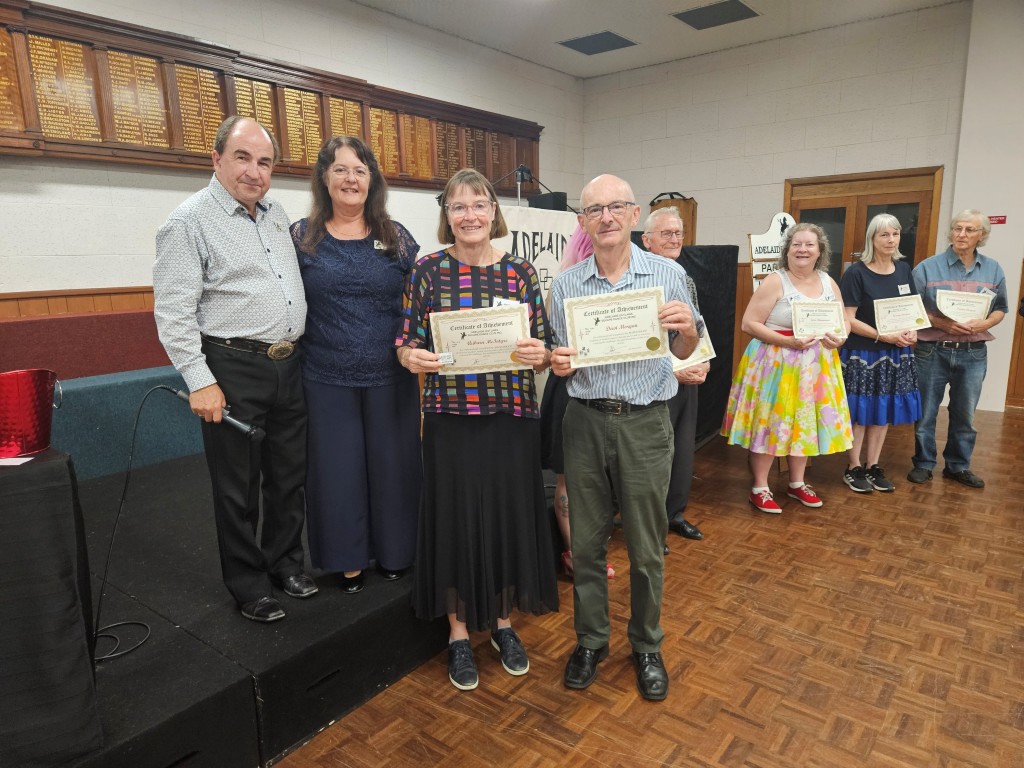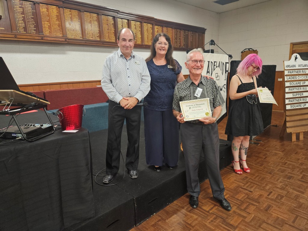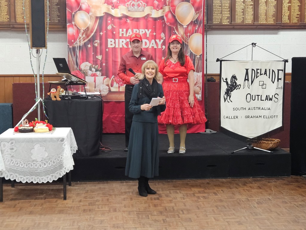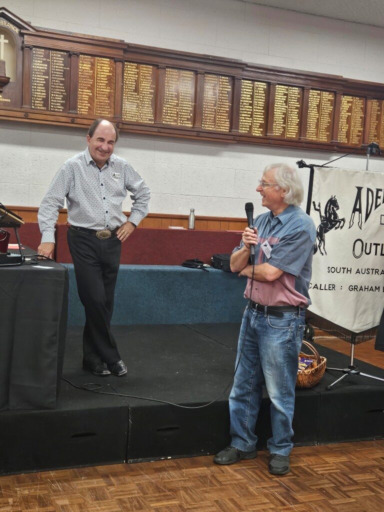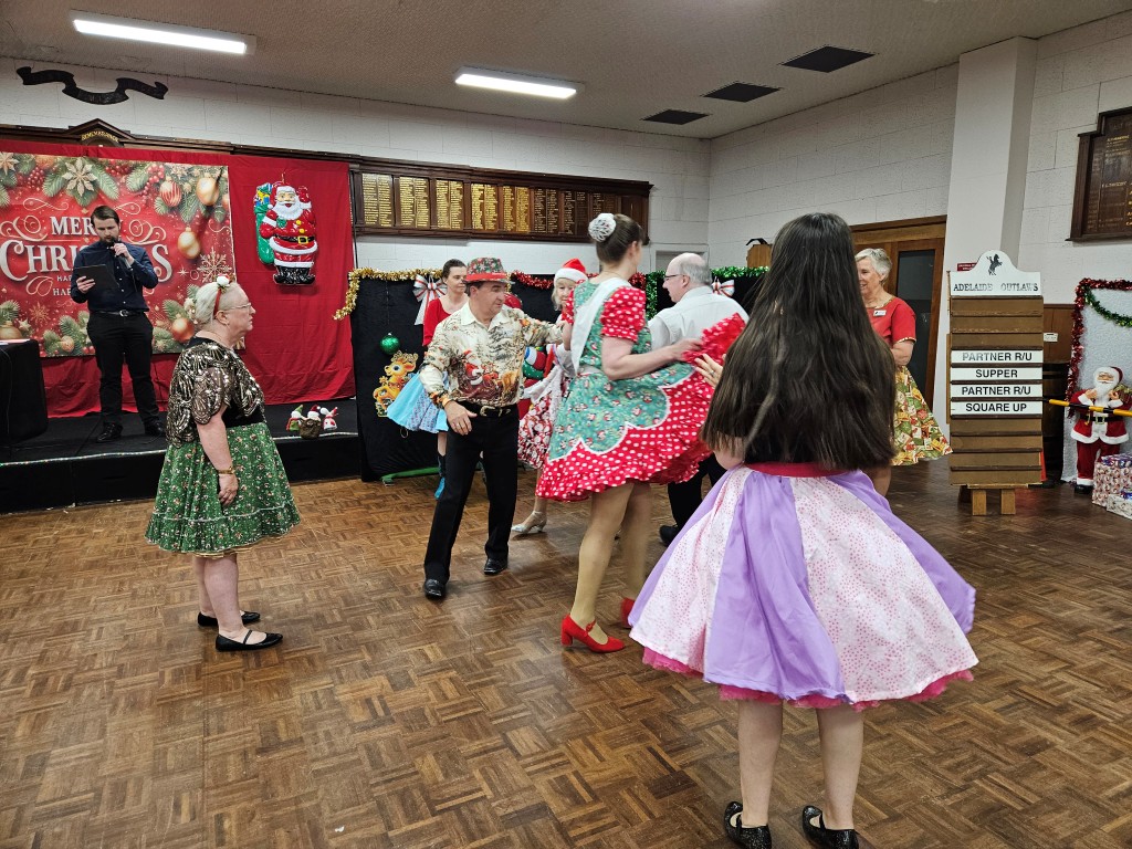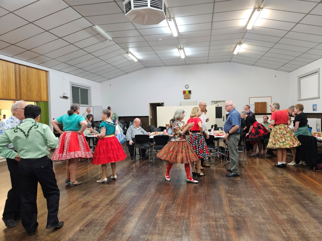Our learners have just completed the Mainstream program and are now integrated into the Monday night club. A celebration with presentation of certificates and a welcome pack from the SA Square Dance Society. Not to mention a magnificent basket supper too! At the end of this reel – a small tribute song to Neil Sedaka.