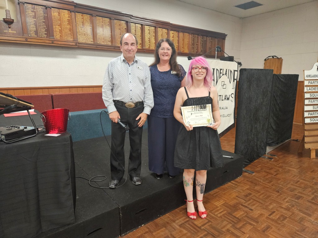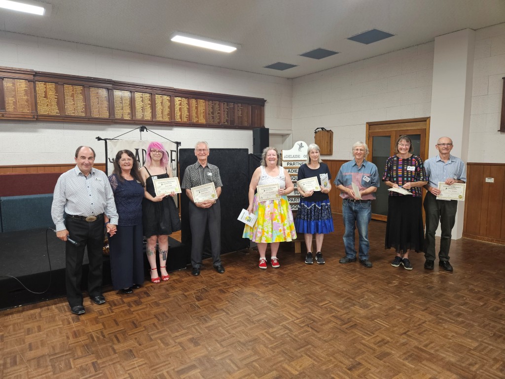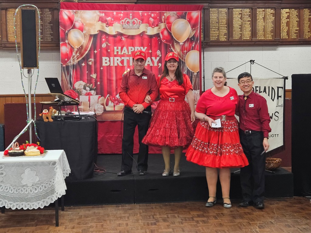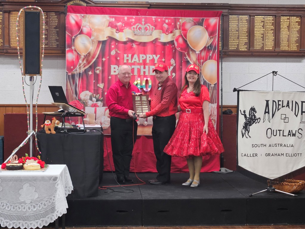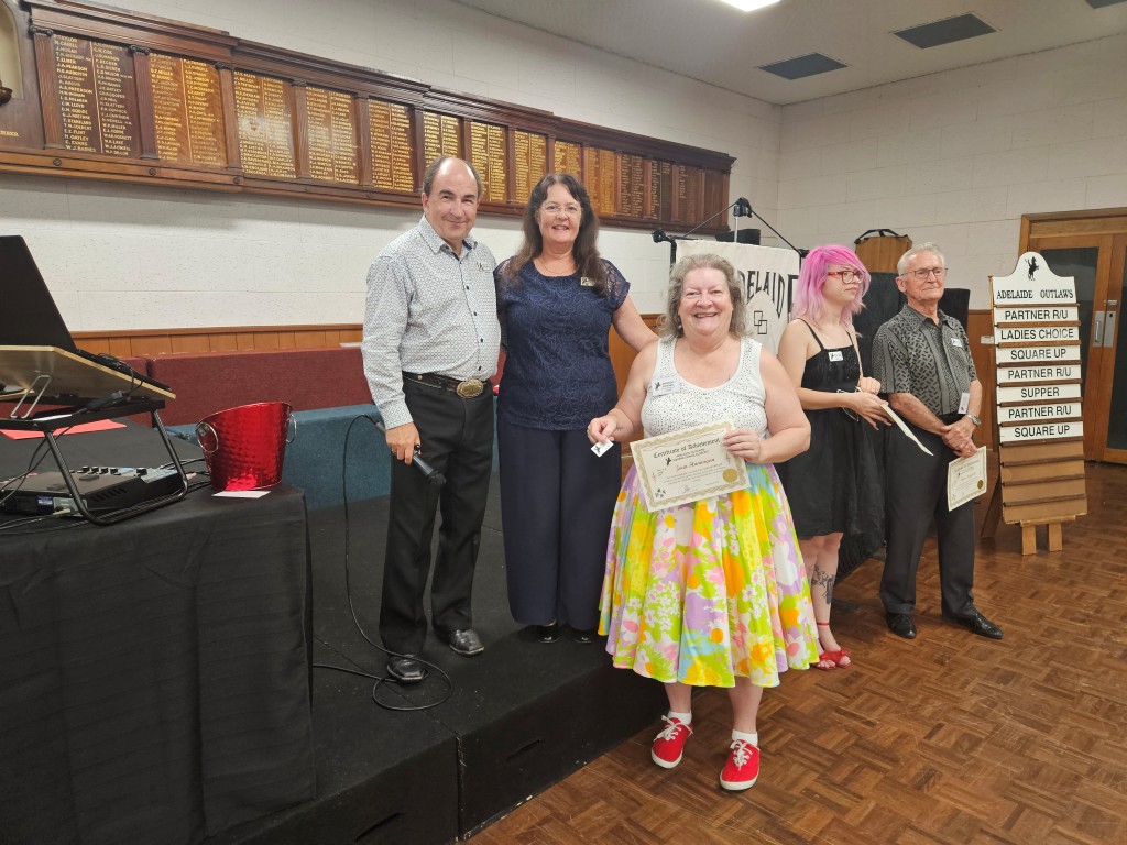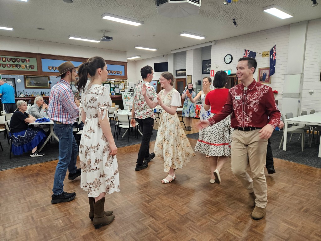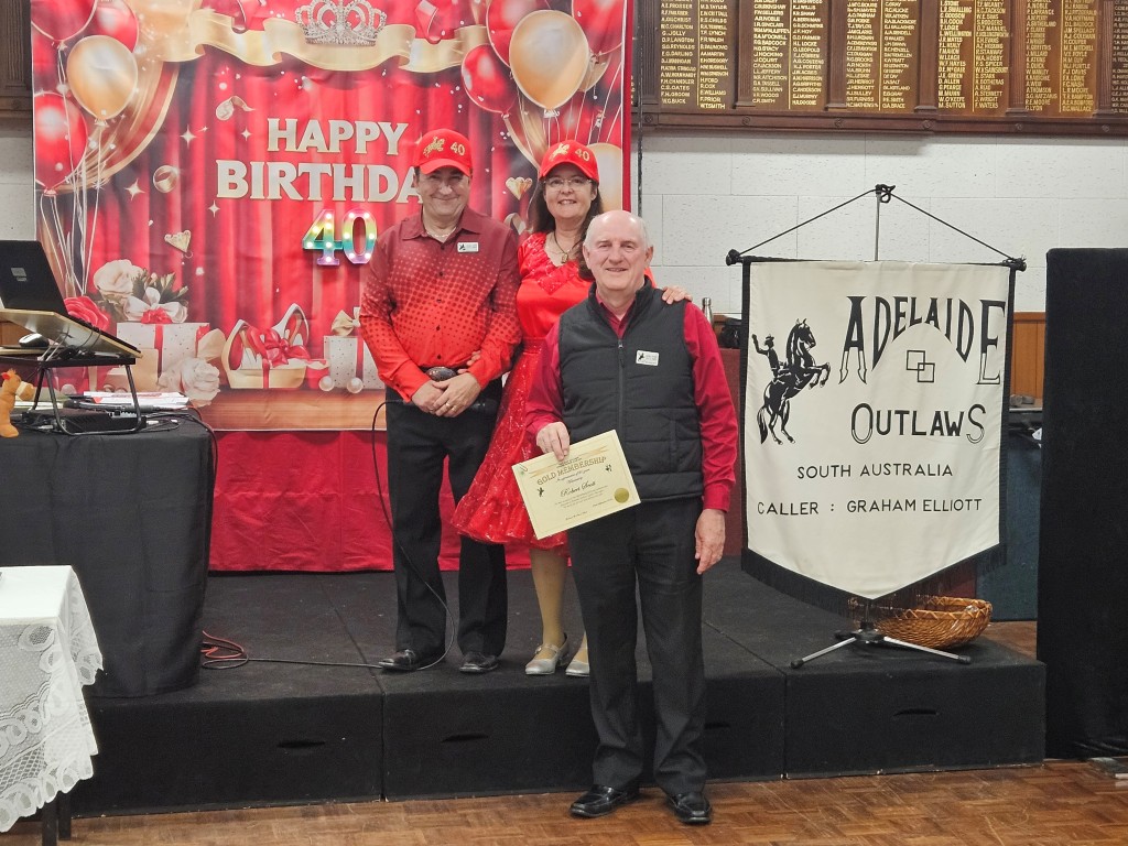 Our learners have just completed the Mainstream program and are now integrated into the Monday night club. A celebration with presentation of certificates and a welcome pack from the SA Square Dance Society. Not to mention a magnificent basket supper too! At the end of this reel – a small tribute song to Neil Sedaka.
